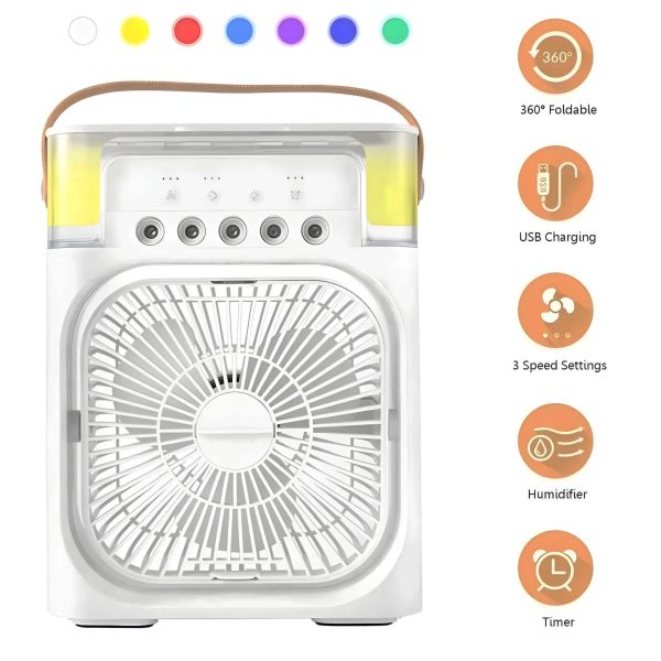 3-in-1 USB Fan, Mini Portable Fan, Humidifier, Anti-Drying Fan, Air Purifier, Spray Cooler with 7-Color LED Light, Type-C.