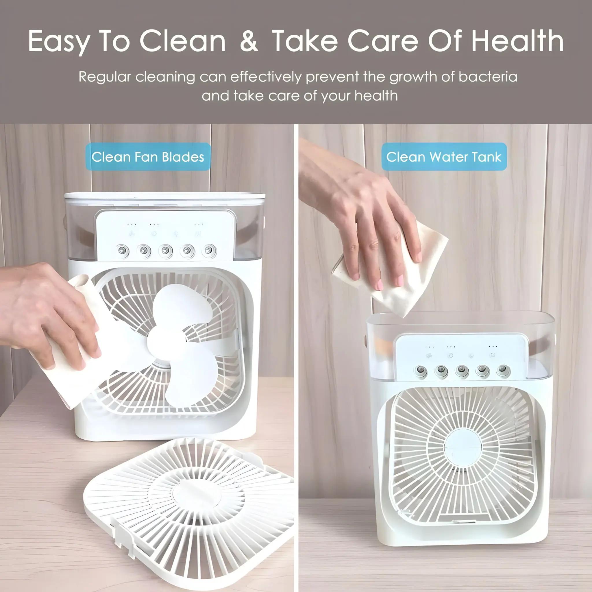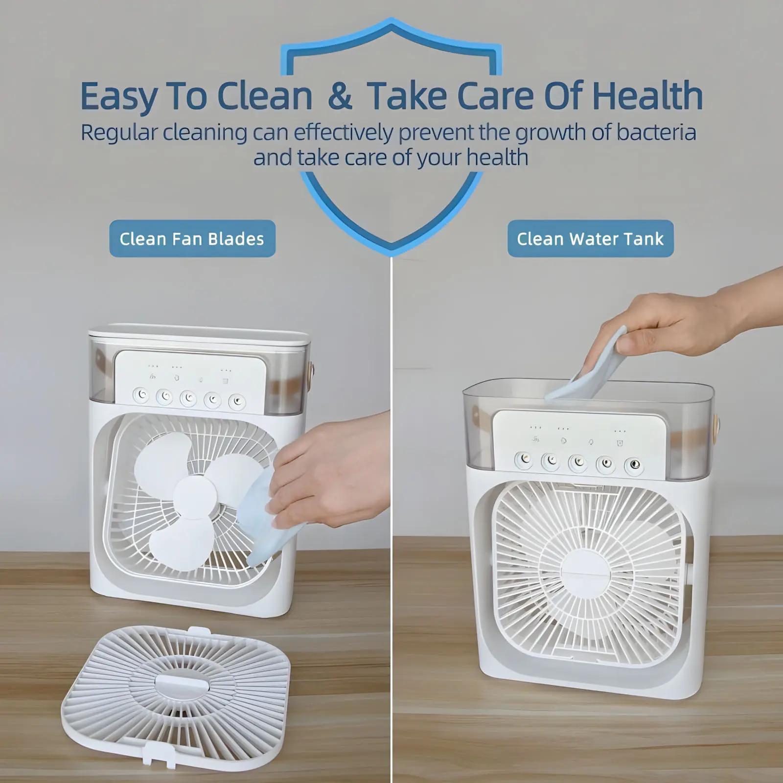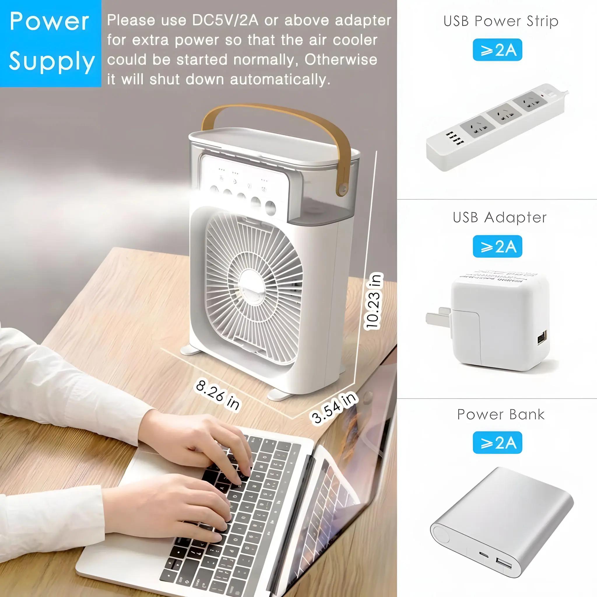 3-in-1 USB Fan, Mini Portable Fan, Humidifier, Anti-Drying Fan, Air Purifier, Spray Cooler with 7-Color LED Light, Type-C.