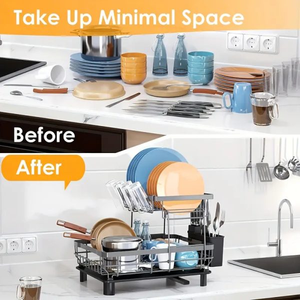 2 Tier Dish Drying Rack for Kitchen Counter Metal Dish Racks Drainers with Knife Cup Utensil Holder