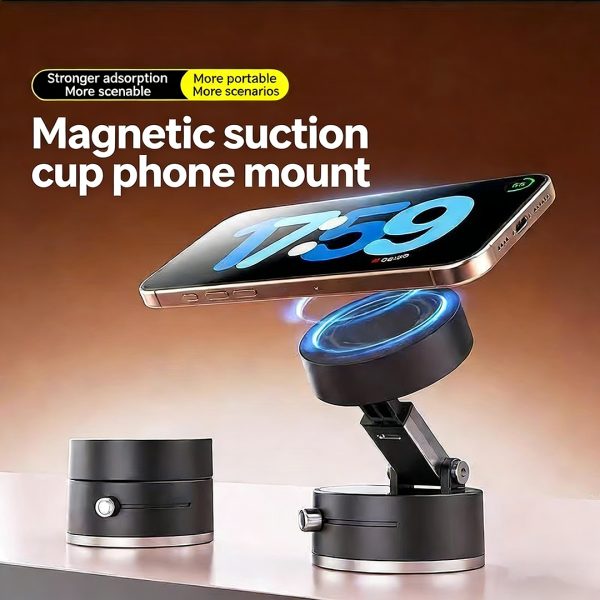 Vacuum Magnetic Suction Phone Holder, 2025 New Magnetic Suction Phone Mount, Foldable Portable Double-Sided Vacuum Magnetic adsorption Adjustable Mobile Phone Holder